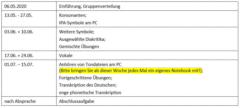 ![]() Anzahl der Leistungspunkte: 3 CP ![]() Scheinvoraussetzungen: